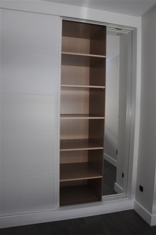 Detalle interior de ropero en melamina con espejo