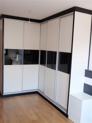 Ropero puertas correderas en melamina y cristal negro. Carriles y tiradores en aluminio