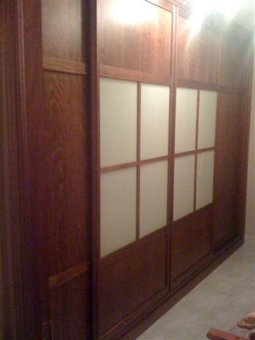Ropero con moldura cuadrada y cortinilla. En rechapado de haya.
